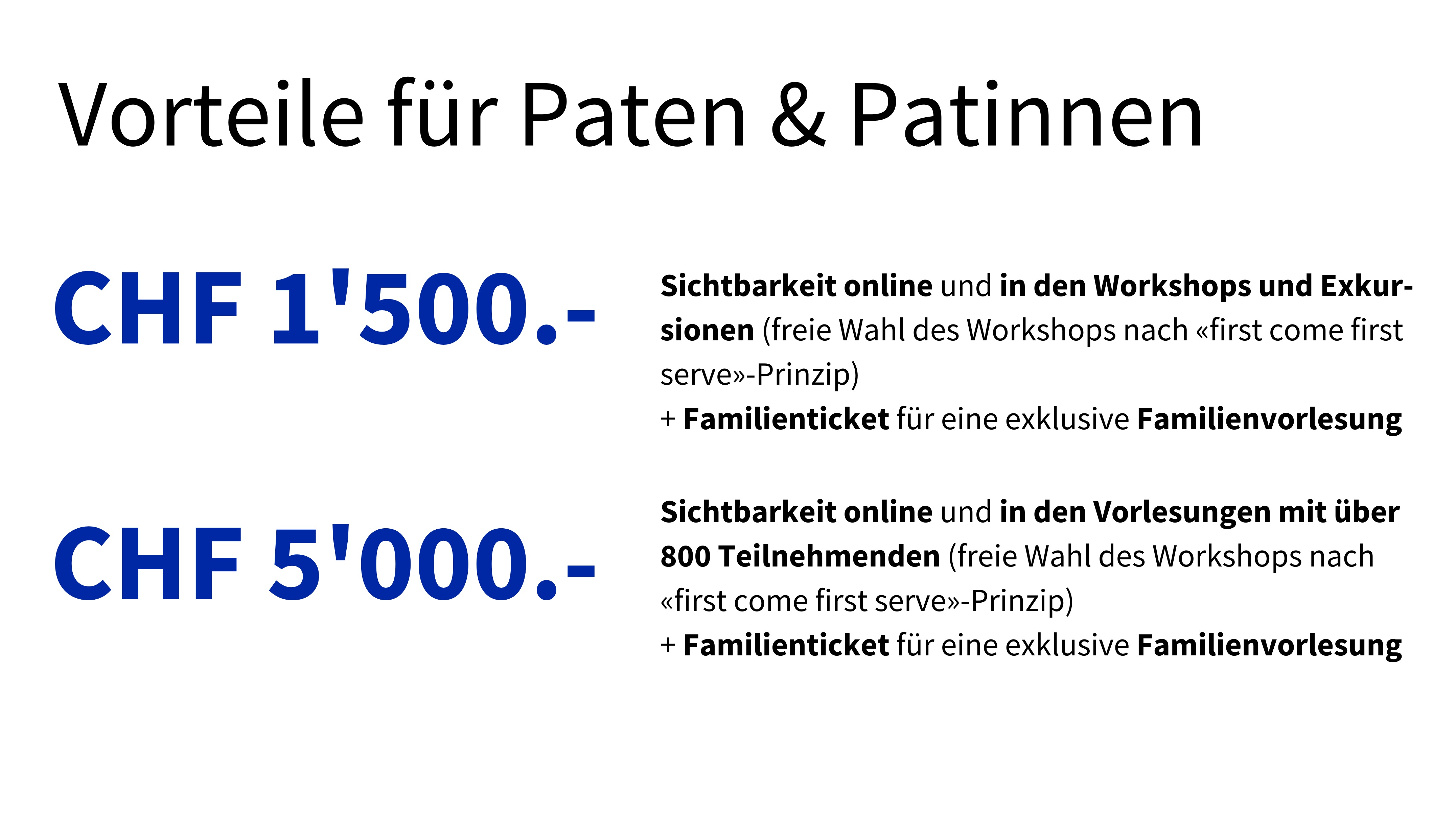 Übernehmen Sie die Patenschaft einer Vorlesung für CHF 5'000.- |