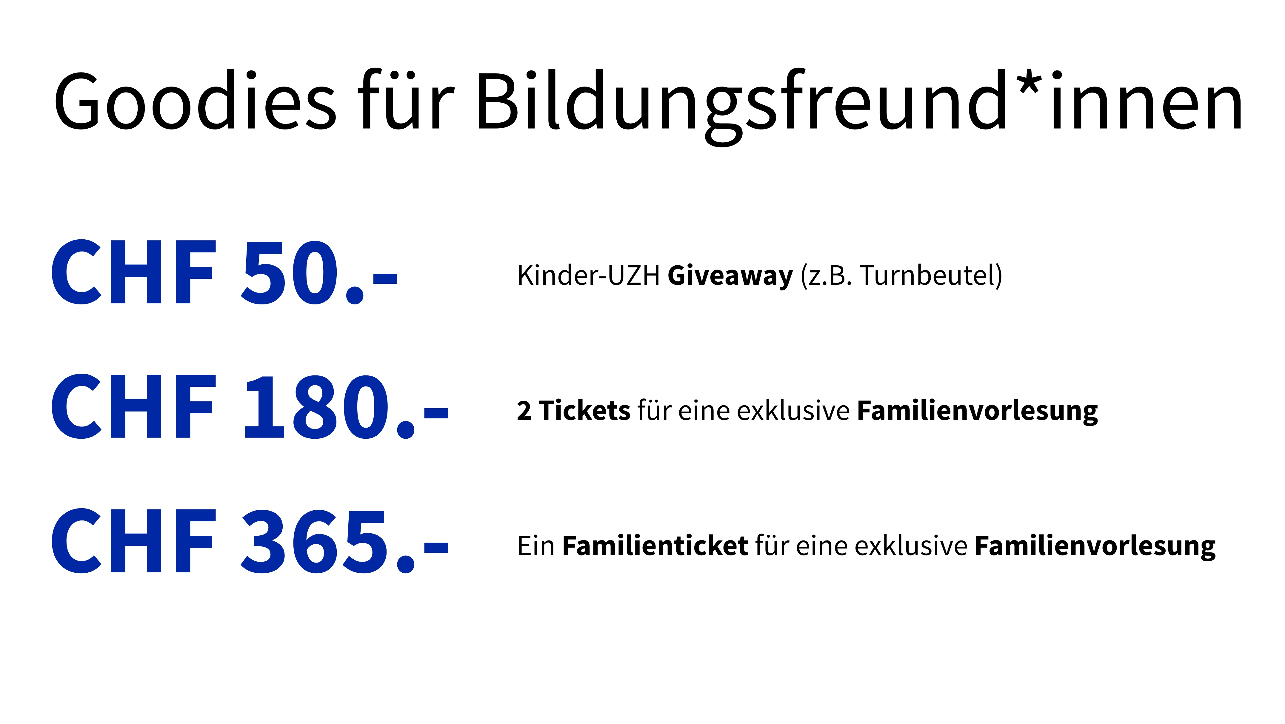 Möglich wird das durch die Unterstützung der Universität Zürich sowie durch Beiträge von Stiftungen und Unternehmen. Um das Angebot langfristig zu sichern und weiterhin allen Kindern offen zu halten, steht die Kinder-UZH nun erstmals auch privaten Unterstützer*innen offen.